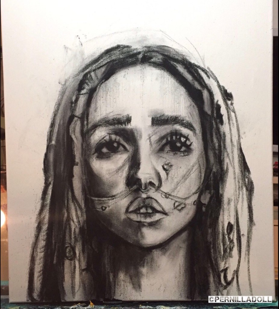 “FKA twigs”, 40x50cm, charcoal on canvas, 2016, *sold