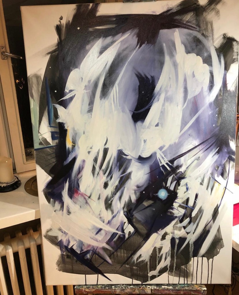 The paintings have elements of spiritualism, mysticism and melancholy with a twist of stubborness and determination.