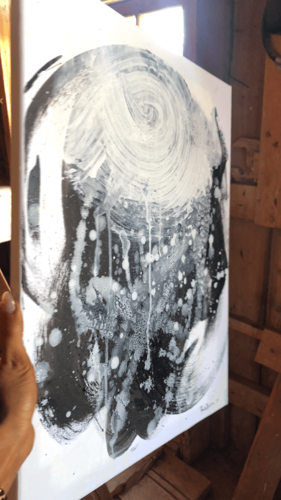 The place where the exhibition was held is an old mill – an amazing background and contrast to Pernilla´s abstract paintings. Around 100 persons arrived to the opening night; it was such a beautiful event. Pernilla also sold her handmade wire rings during the exhibition.